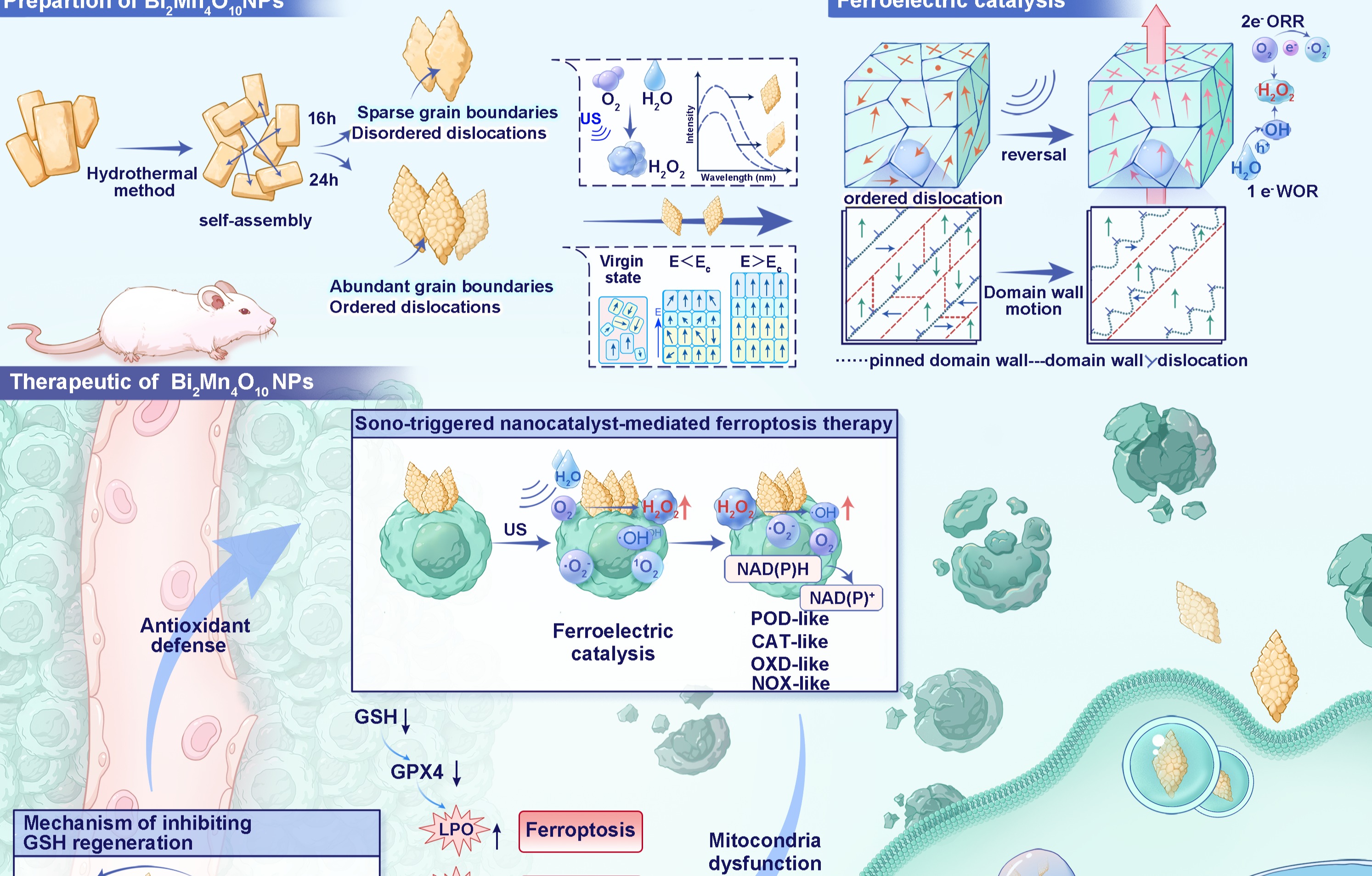 哈工程深入学习贯彻党的二十届四中全会精神,持续深入贯彻落实习近平总书记视察学校重要讲话重要指示精神,加强基础研究。近日,哈工程材化学院杨飘萍教授团队在肿瘤治疗领域取得新突破,将晶界工程调控的铁电催化与超声触发的原位H2O2生成相结合,实现了肿瘤微环境中氧化应激的显著放大与高效抑瘤效果。研究成果以“基于扭转应变铁电纳米颗粒的晶界调控及其铁电催化治疗增强机制”为题,发表于Cell子刊《细胞·生物材料》(《Ce...